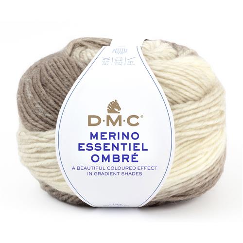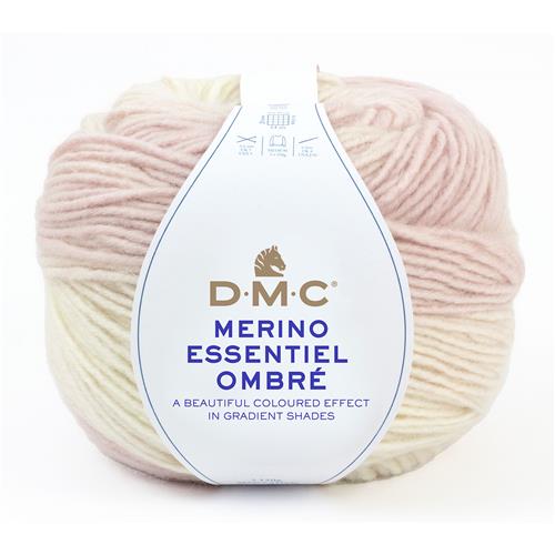 DMC Merino Essentiel Ombré - zaubern Sie wunderschöne Ombré-Effekte mit dem selbstmusternden Garn aus dem Hause DMC, das zu 50% aus Merinowolle und zu 50% aus hochwertigem Acryl besteht. Es ist ein weiches Garn, das sich sehr gut verarbeiten lässt und angenehm auf der Haut zu tragen ist.